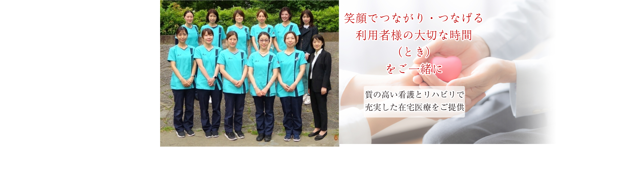常に利用者さまとご家族のご希望や価値観にあったプランの提案とそれに沿った看護を実施し、充実した人生をお過ごしいただけるよう努力して参ります。